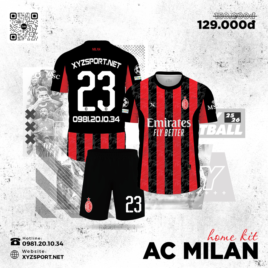 Thể hiện niềm đam mê bóng đá cùng màu áo đỏ đen huyền thoại của AC Milan – thiết kế biểu tượng cho sức mạnh, tinh thần máu lửa và lòng trung thành không thể lay chuyển.