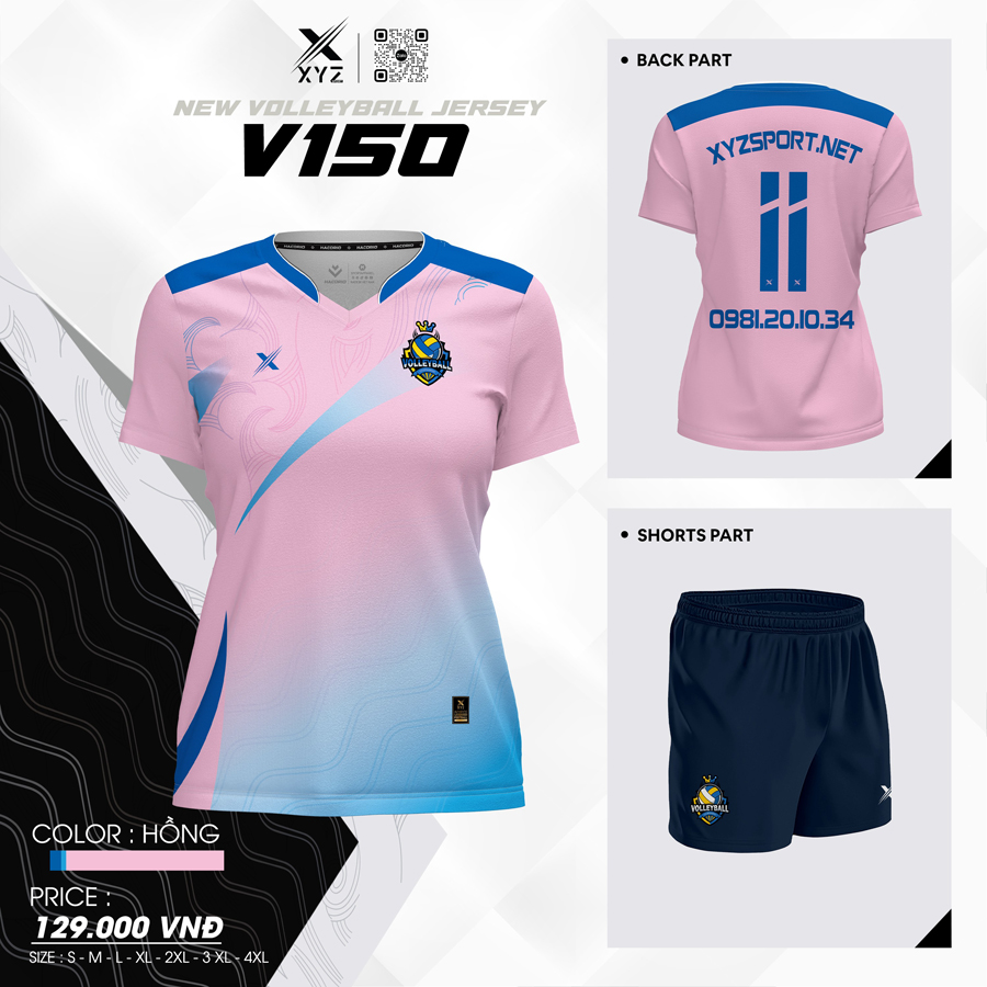Mẫu áo bóng chuyền V150 phối màu hồng – xanh dương mang đến sự trẻ trung, nổi bật và thể hiện rõ tinh thần đồng đội trên sân đấu.