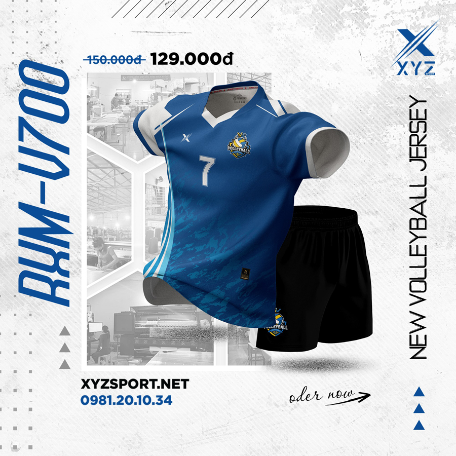 Áo đấu bóng chuyền XYZ RJM-V700 – Xanh Dương Đậm