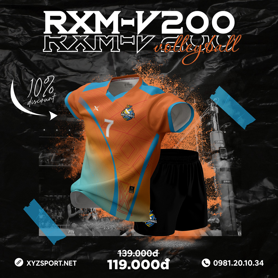 RXM-V200 – Bộ đồng phục bóng chuyền cá tính với thiết kế cam sáng chủ đạo, nổi bật sự nhiệt huyết, kết hợp với xanh dương và trắng tạo nên tổng thể hài hòa, mạnh mẽ và đầy phong cách trên sân đấu.