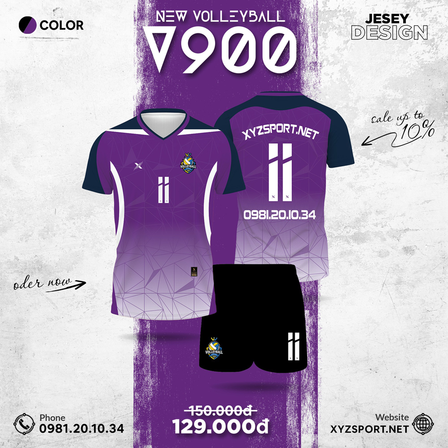 Áo Bóng Chuyền V900 màu tím gradient là sự kết hợp hoàn hảo giữa thời trang và tính năng thể thao, dành cho đội bóng chuyên nghiệp lẫn phong trào.