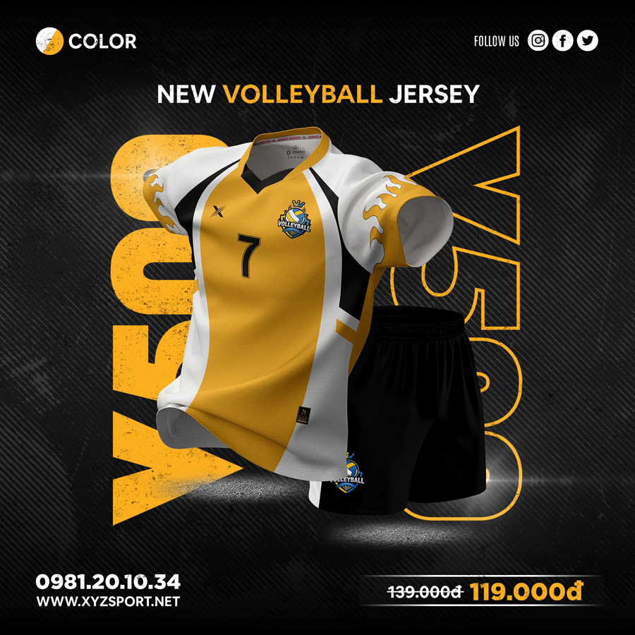 Chiếc áo bóng chuyền V500 là sự kết hợp hoàn hảo giữa yếu tố thẩm mỹ và khả năng thi đấu tối ưu. Với ba màu chủ đạo Vàng – Trắng – Đen, sản phẩm mang đến một tổng thể bắt mắt nhưng vẫn hài hòa và hiện đại. Màu vàng mang lại cảm giác tràn đầy sinh lực, thể hiện tinh thần năng nổ của các vận động viên. Trong khi đó, trắng góp phần tạo nên sự tinh tế, sạch sẽ, và dải màu đen mang lại điểm nhấn mạnh mẽ, tôn lên vóc dáng người mặc.