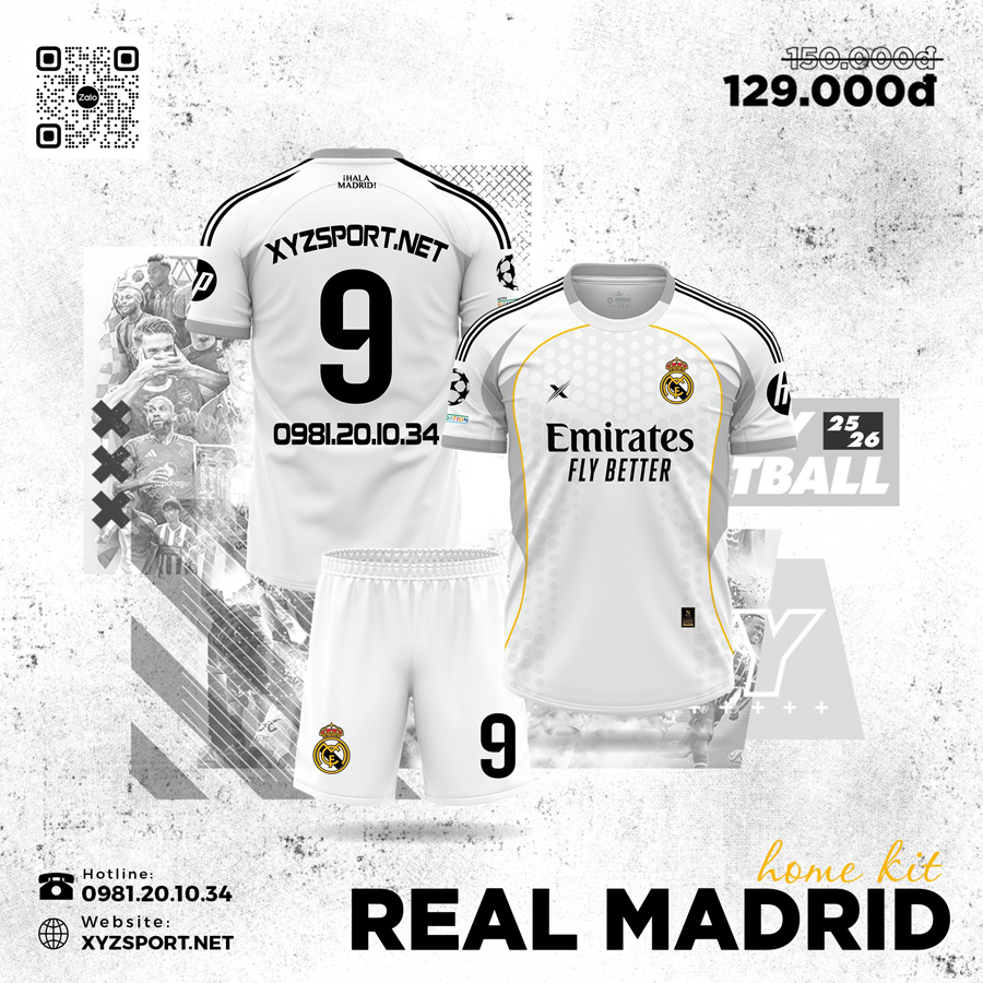Áo Real Madrid sân nhà mùa giải 2025/2026 đang có mặt tại XYZ Sport. Số lượng giới hạn, đặt hàng ngay hôm nay để sở hữu mẫu áo thi đấu đỉnh cao cùng CLB lớn nhất thế giới!