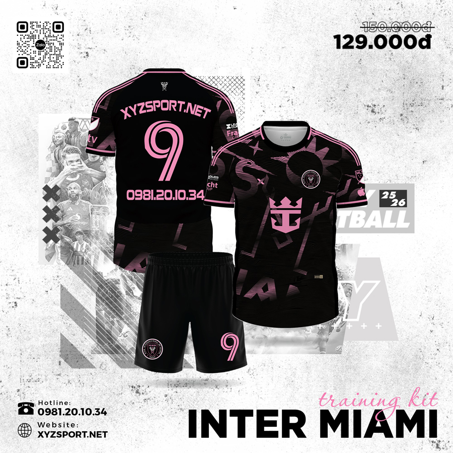 Chiếc áo training mới nhất của CLB Inter Miami mùa giải 2025 gây ấn tượng mạnh với phối màu độc đáo: đen kết hợp hồng pastel – một sự pha trộn đầy tính thẩm mỹ, mang đến vẻ ngoài mạnh mẽ, thời trang và cá tính cho người mặc.